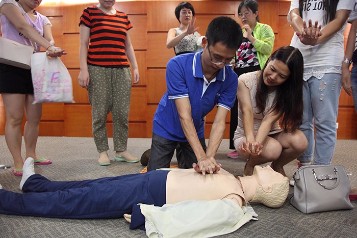 讲座中,福田区人民医院急救科张岸林副主任通过PPT图文并茂地向大家讲解了如何进行心脏按压、徒手心肺复苏等具体操作方法,在他的精彩讲解下,参加培人员认真听课,并对急救要点做了详细的笔记。讲解结束后,他在急救助手的辅助下,通过“模拟人”向大家展示了徒手心肺复苏技术操作演示,并邀请现场职工进行模拟演练,大家争先恐后参与模拟演练,整个讲座现场表现出热烈的学习氛围。讲座结束后,福田区人民医院妇科主任医师黄晓慧、急救科张岸林一起为星空网的员工和社区居民进行了健康咨询、量血压、血糖测量等义诊活动。活动结束后新星空(中国)公司员工与福田区医院的专家就妇科疾病预防进行了交流和探讨。
